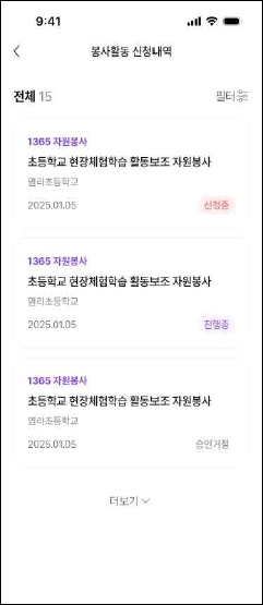 아이부자(하나은행) : 자원봉사 시작하기 ▶ 자원봉사 통합 목록 ▶ 자원봉사 신청 내역