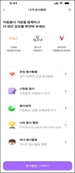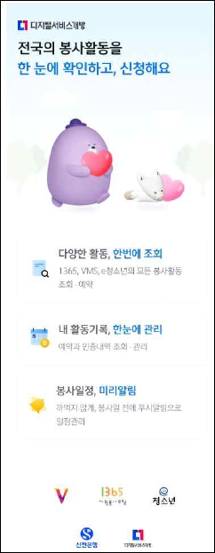 정부는 국민들의 디지털 편의성을 극대화하기 위해, 6월 9일부터 다음 세 가지 핵심 공공 서비스를 민간 앱에 개방한다고 발표했습니다. 다양한 앱! 그 중에서 자원봉사 이력조회 및 신청과 연관된 어플은 아래에 있는 어플들 입니다. 편리하게 조회 하고 신청해 보세요!